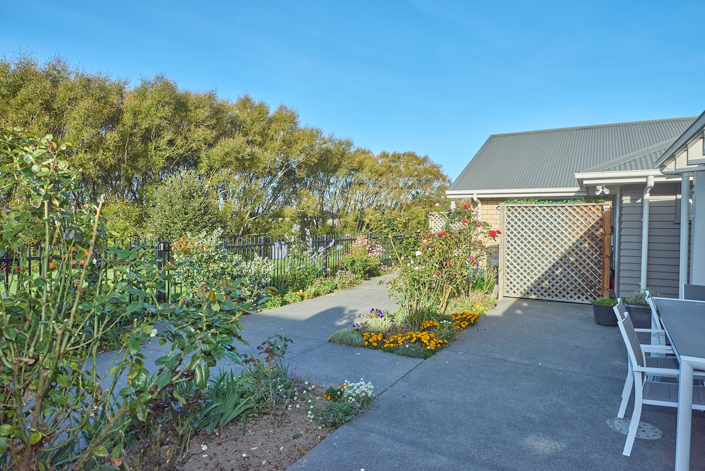 Rhodes Abbeyfield house is located in the Christchurch suburb of Wigram, close to bus services, shops, cafes and restaurants, a medical centre and pharmacy. The house is in a quiet lane and looks out on to a pleasant reserve.